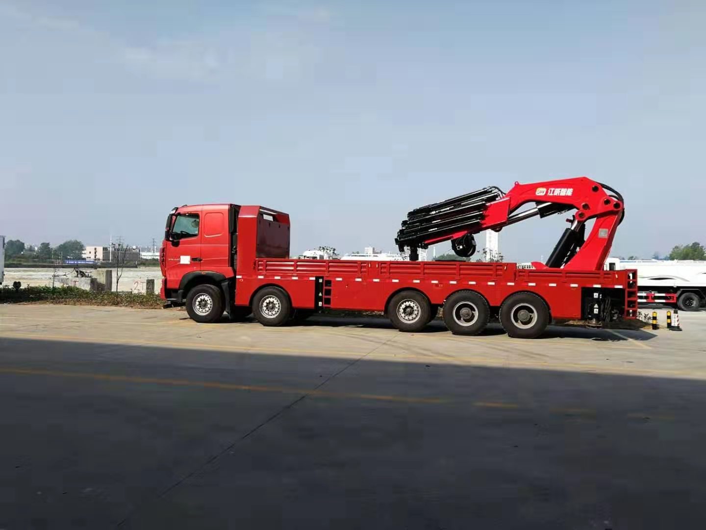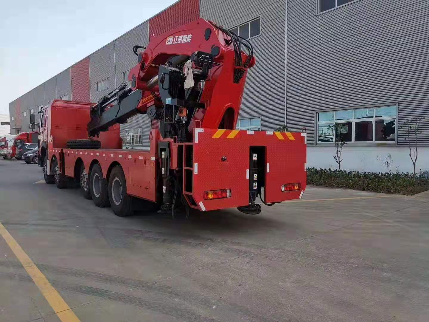 江威SQ2200機(110噸)全折臂吊機。4米實吊55噸,整車高度3.55米。匹配重汽豪沃340馬力前4后8,整車自重33噸,行駛總質量43噸,可拉7噸叉車,放上工具不超重。匹配重汽豪沃380馬力,整車自重34噸,行駛總質量50噸,拉上10噸叉車放上吊裝工具不超重。在江蘇蘇州,不拉叉車即可過江陰大橋又能過虎門大橋。2200能拉能吊出勤率高,干吊裝的又一理想選擇。