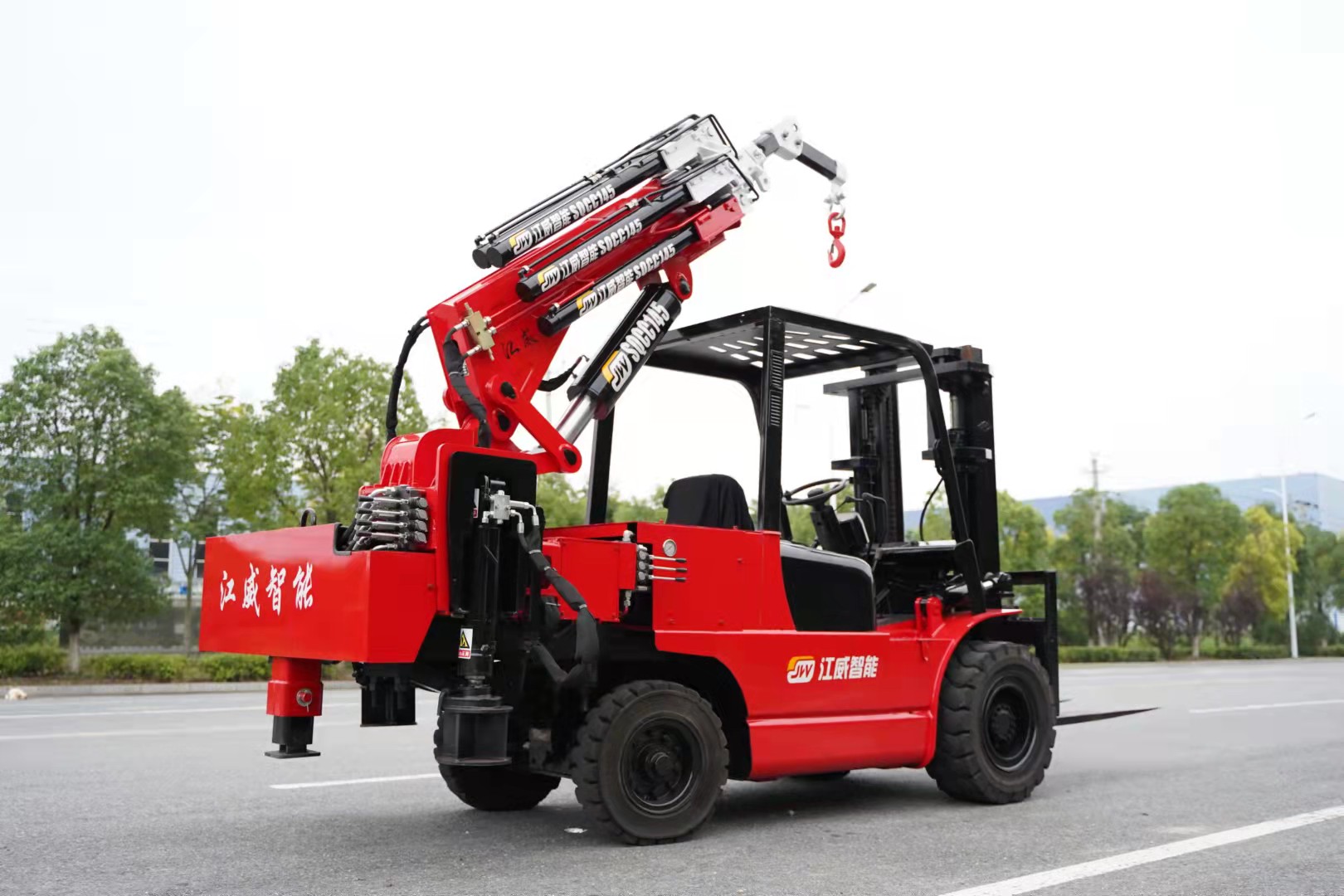 湖北江威隨車吊廠家生產的叉車飛臂吊,叉車吊,折臂吊,大噸位隨車吊價格統一以【隨車吊廠家直銷價格】出售!