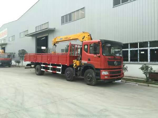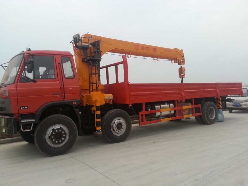 配8噸四節臂吊機,最大工作半徑12米,最大起升高度15米,吊機在不出臂時,揚角打高可吊8噸,伸出5米時可吊3噸,全部伸出最佳揚角可吊1噸。整機自重2.8噸。