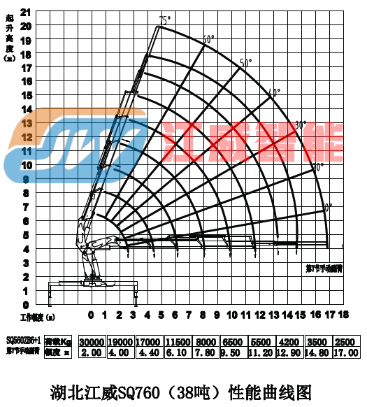 牽引隨車吊上裝配置:江威38噸隨車吊,6節液壓一節手拉,最大工作半徑17米,支腿跨度2.5-7.1米,自重7噸,全部伸出可吊2.5噸,可選裝帶卷揚,帶遙控器。