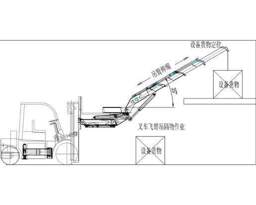 叉車飛臂吊采用多節(jié)課伸縮吊臂。設(shè)備貨物起重可放置制定位置。