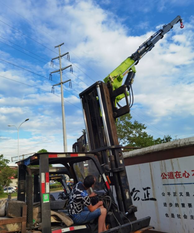 湖北江威隨車吊廠家生產的叉車飛臂吊,叉車吊,折臂吊,大噸位隨車吊價格統一以【隨車吊廠家直銷價格】出售!