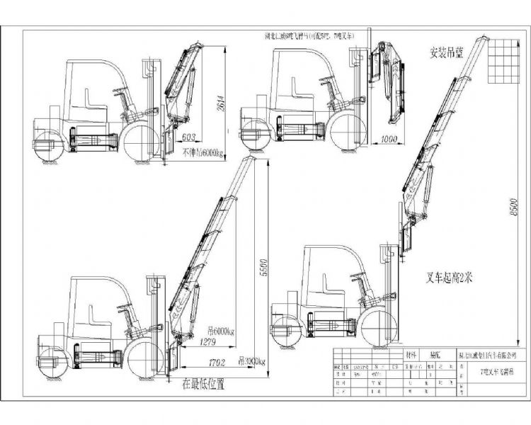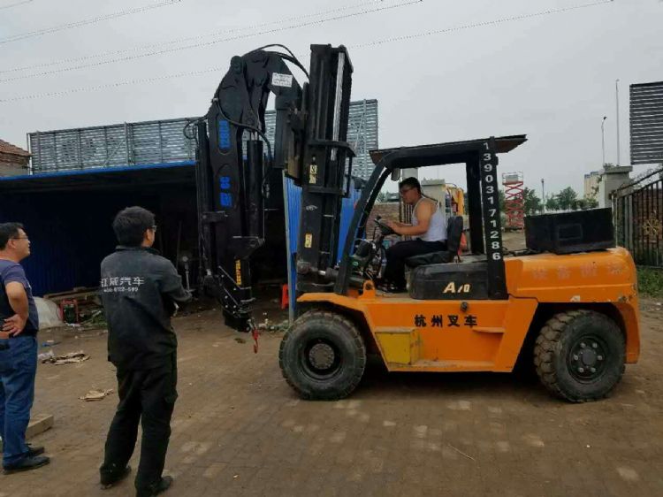 6噸叉車(chē)飛臂吊機(jī),最大工作9.1米,全部升出可吊0.8噸,高度13米。