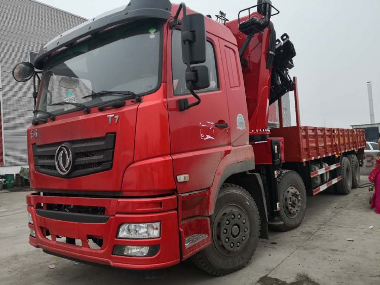 江威30噸隨車吊底盤配置:東風前四后八,玉柴270馬力發動機,新款T7駕駛室,前橋5噸,后10噸,法士特10檔變速箱,300通三層大梁,帶原廠ABS,取力器,遠程油門。