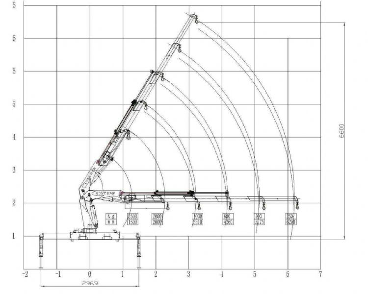 最大工作半徑6.3米,最大起升高度7.6米,兩節液壓伸縮臂,兩節手動伸縮臂,最大起升質量3噸,變幅度范圍1-59度,360度全回轉,支腿跨距3.27米。