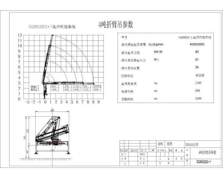 江威3噸折臂吊機,三節液壓,一節手動,最大工作半徑6.3米,最大起升高度7.6米,2米位置吊2.5噸,3.31米吊1.1噸,4.26米吊0.8噸,5.2米吊0.6噸,全部升出可吊0.4噸,靜止下高1.3米,寬1.7米,占地60公分。