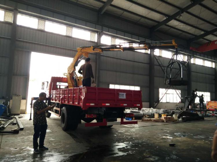 江威6.3噸三節(jié)臂吊機(jī),最大工作半徑7.4米,最大起升高度9.4米。可根據(jù)客戶需要,加裝夾具,加裝卷揚(yáng)等等。