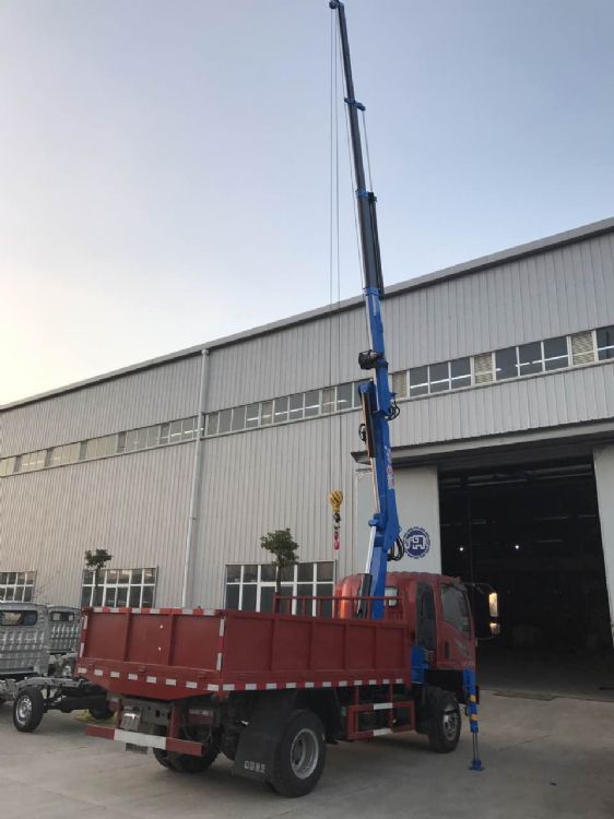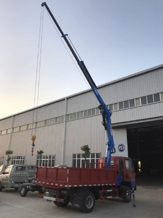 上裝配置:4噸四節全折臂吊機,最大工作半徑9米,最大起升高度12米,全部伸出可吊0.8噸,全液壓,全回轉。