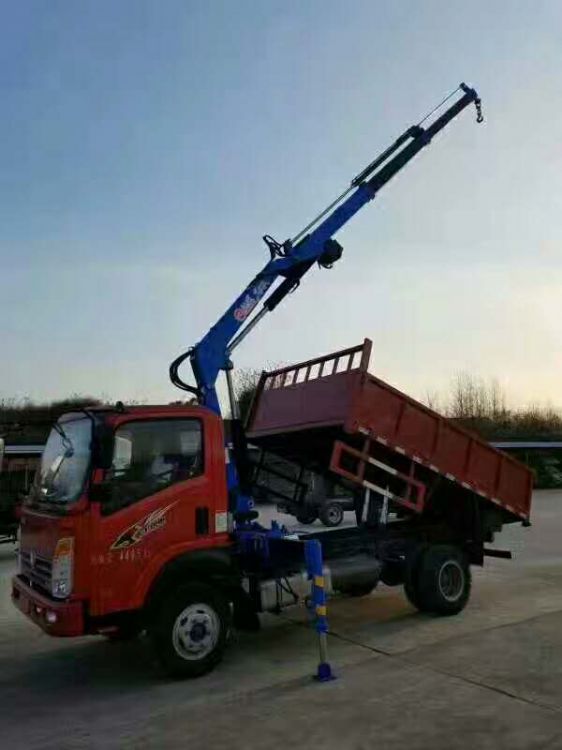 江威3噸折臂吊機,最大工作半徑6.3米,最大起升高度7.6米,二節液壓,二節手動,支腿為360度回轉的,全部伸出可吊0.4噸。