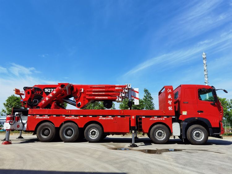 江威7200自問世短短數月市場使用數十臺,訂單不斷,成熟穩健使用。匹配底盤重汽T7駕駛室,440德國曼發動機,前4后10。整體全加固加強型大梁。吊設備,吊橋梁的最佳最大選擇。整體底座設計,整體加工更保護底盤大梁。回轉馬達中柱墻外設計,更加大轉動扭距,更加加大剎車力距,更平穩。