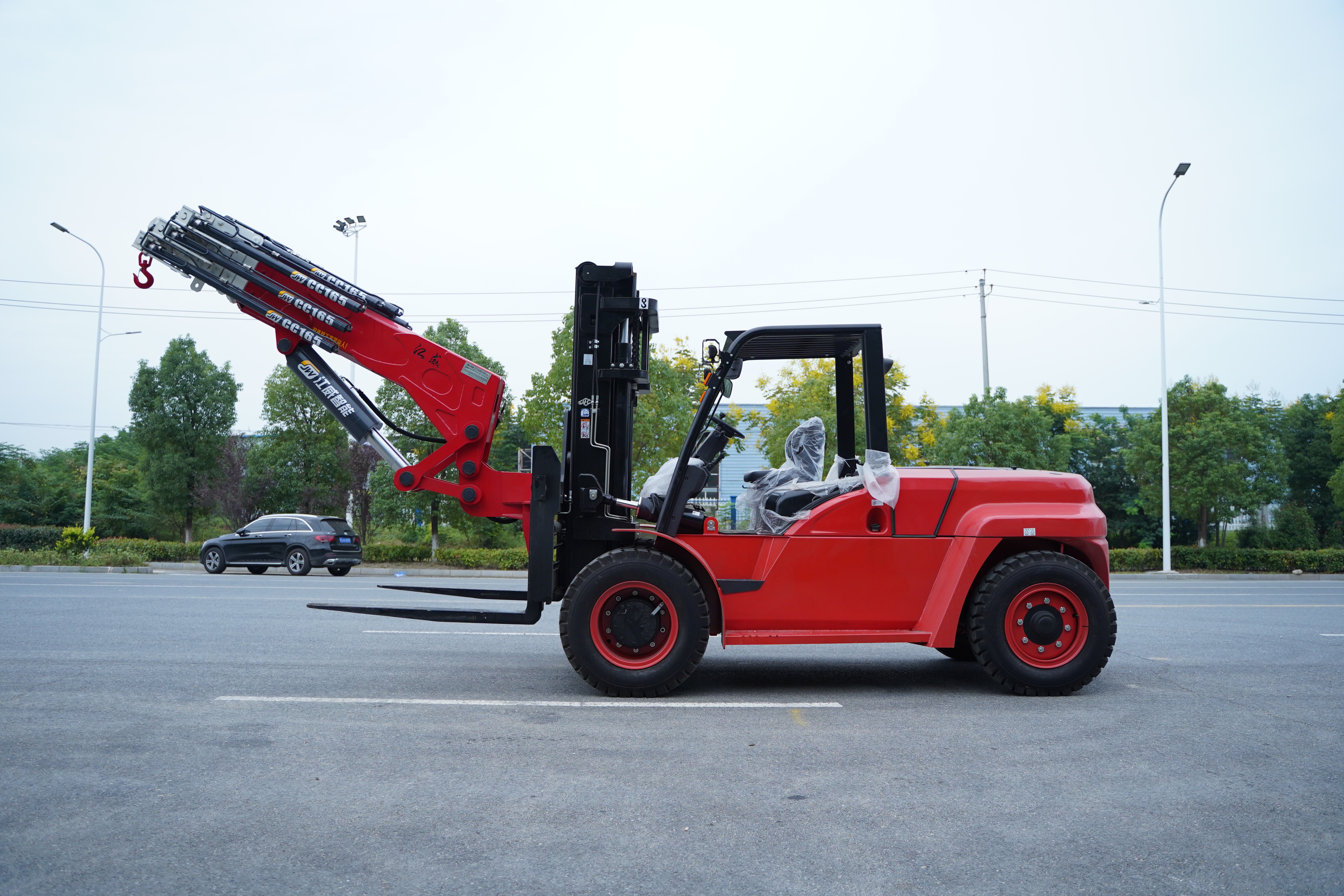 很多地下室限高,吊車進不去,一些機器吊裝,搬運,就只能用叉車了,配上吊臂,能叉能吊,工作起來很是得勁兒。