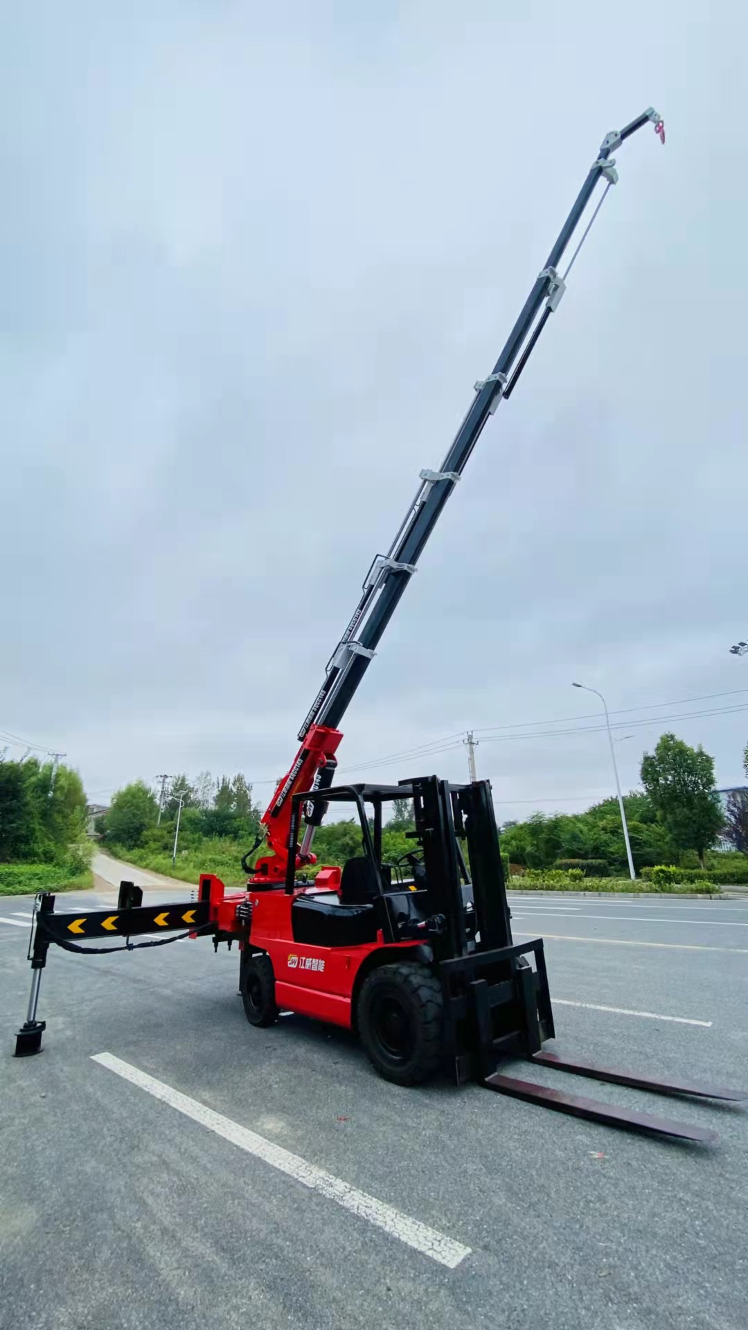 叉車尾吊由吊鉤、吊臂、伸縮機構和油缸等部件組成。吊鉤是用來懸掛貨物的,吊臂則是用于支撐吊鉤并進行伸縮的機構,伸縮機構的長度可以自適應調整,從而使得尾吊可以適應不同高度的貨物。油缸是用來控制吊鉤升降的機構。